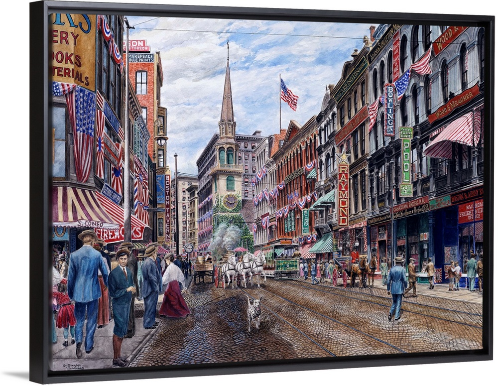 <p>Contemporary painting of a bustling street in Boston.</p>