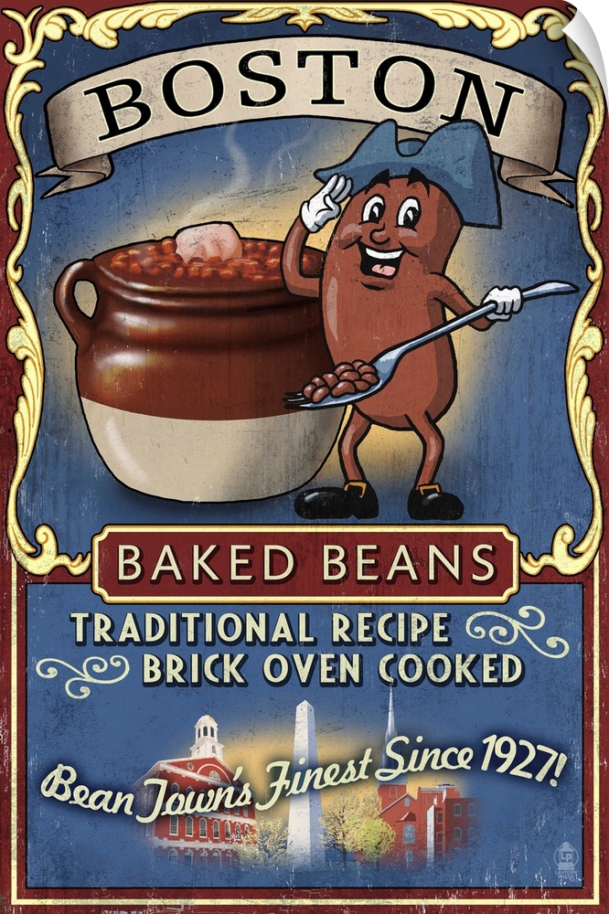 <p>Retro stylized art poster of a vintage sign advertising baked beans.</p>