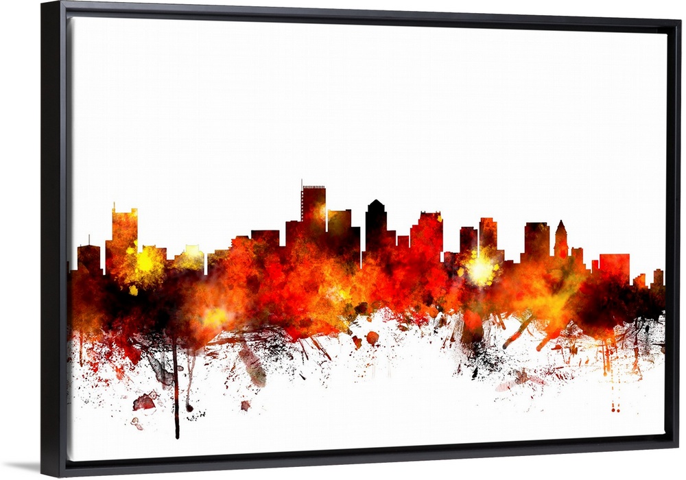 <p>Contemporary piece of artwork of the Boston skyline made of colorful paint splashes.</p>