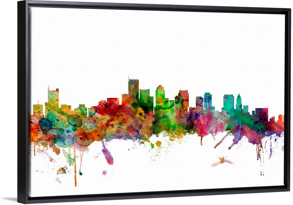 <p>Watercolor artwork of the Boston skyline against a white background.</p>