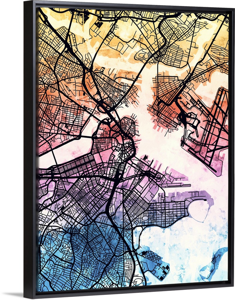 Maps Art Maps Maps by City Street Maps Painting Massachusetts Boston Michael Tompsett Watercolor