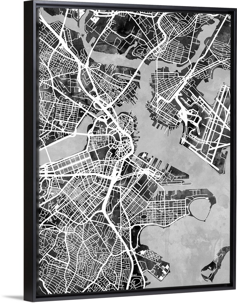 <p>Watercolor street map of Boston, Massachusetts, United States.</p>