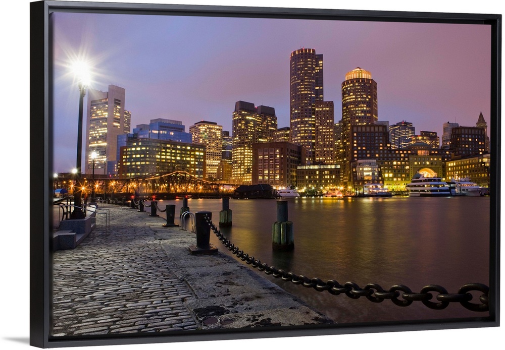 <p>Quayside view across the Inner Harbor to the financial District at night</p>