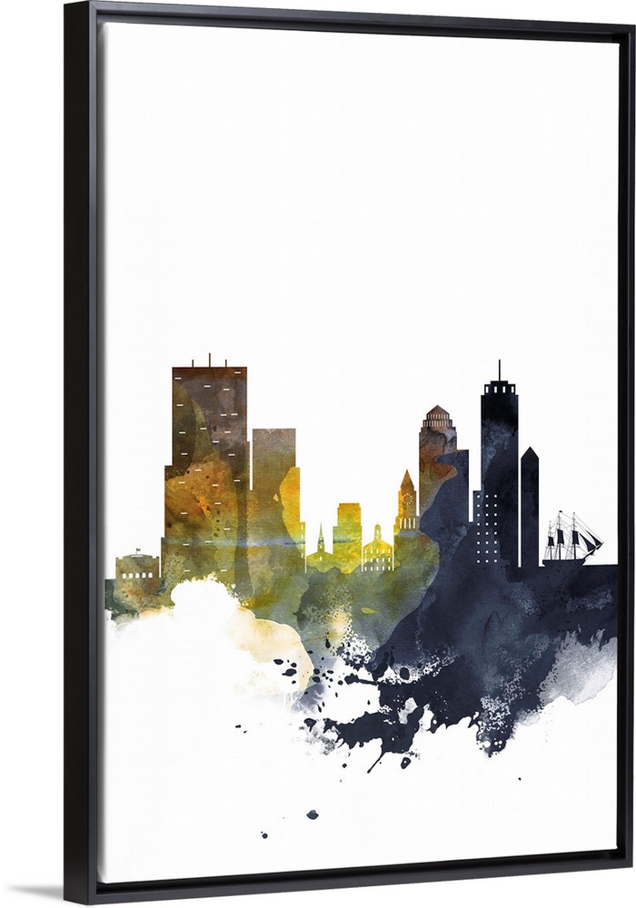 <p>The Boston city skyline in colorful watercolor splashes.</p>