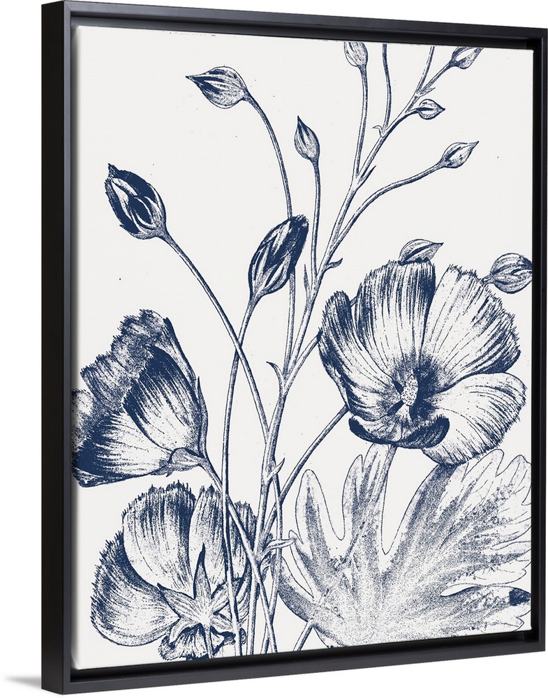 Art Farmhouse Indigo Contemporary Art Plants and Flowers Drawing Florals Poppy Wild Apple Portfolio