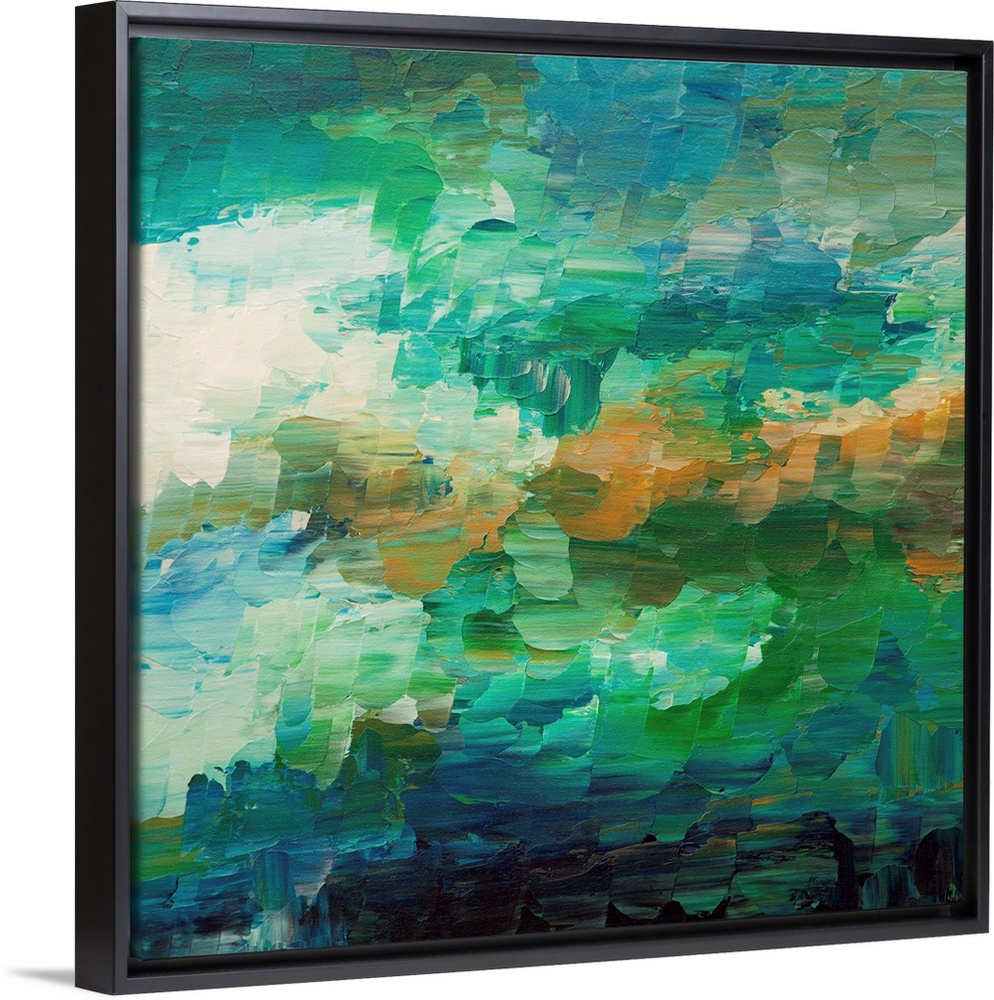 <p>Contemporary abstract painting in cool blues and greens.</p>