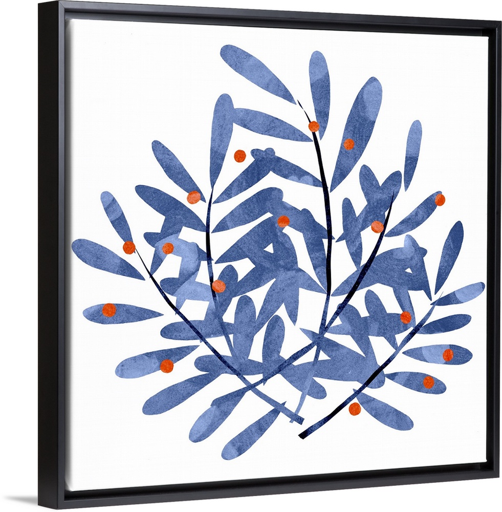 Art Scandinavian Blue Wall Art Decorative Art Florals Leaves Illustrations Painting Emma Scarvey