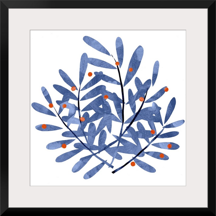Art Scandinavian Blue Wall Art Decorative Art Florals Leaves Illustrations Painting Emma Scarvey