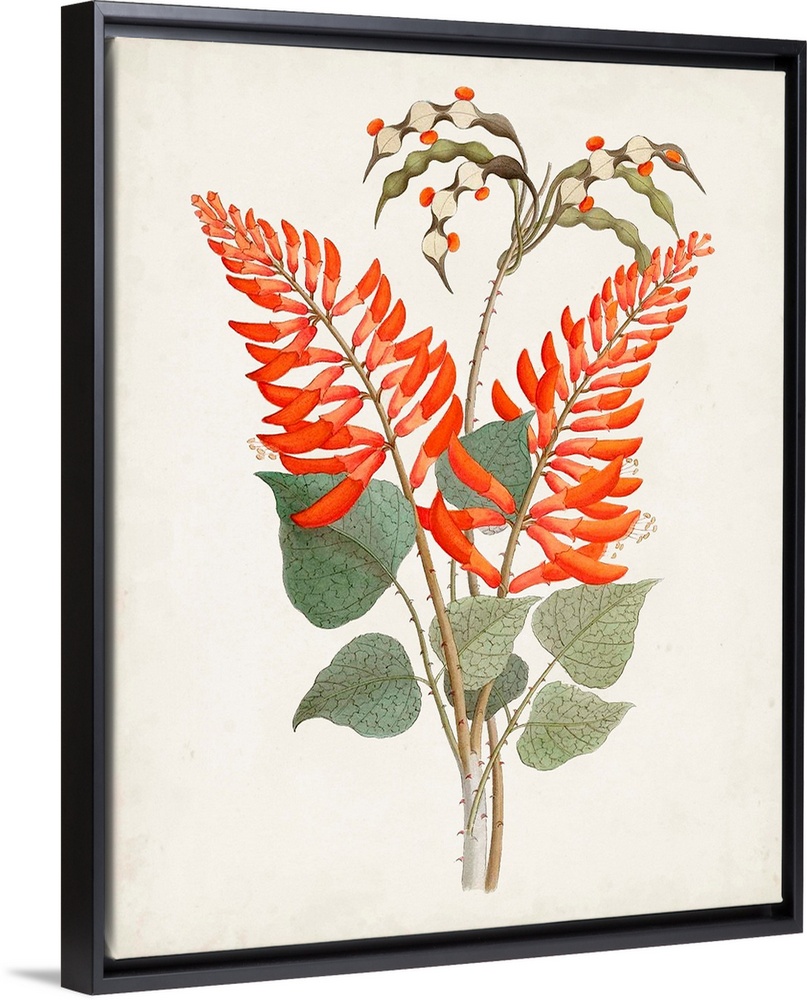 Art Florals Tropical Flowers Illustrations Botanical Illustrations Painting Red Wall Art Vintage Art