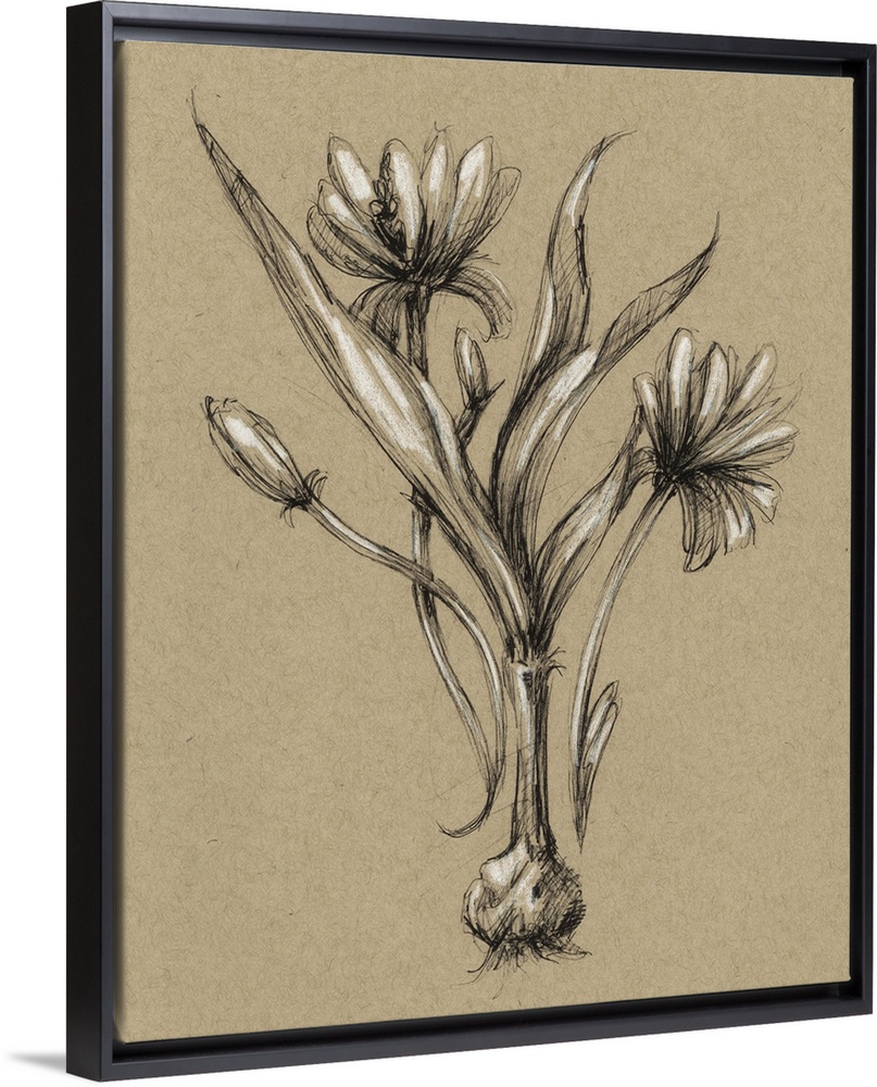 <p>Decorative print of a botanical drawing featuring a flower growing from a bulb.</p>