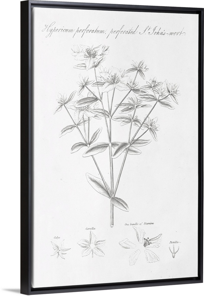 <p>Decorative artwork of a botanical diagram of Perforate St John's-wort.</p>
