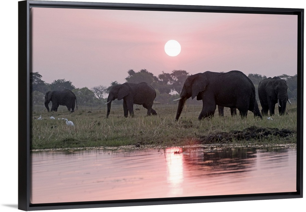 <p>Botswana, North West District, Chobe, Kasane, Chobe National Park, Animal, Elephants at sunset on Chobe Riverfront along the northern border of Chobe National Park</p>