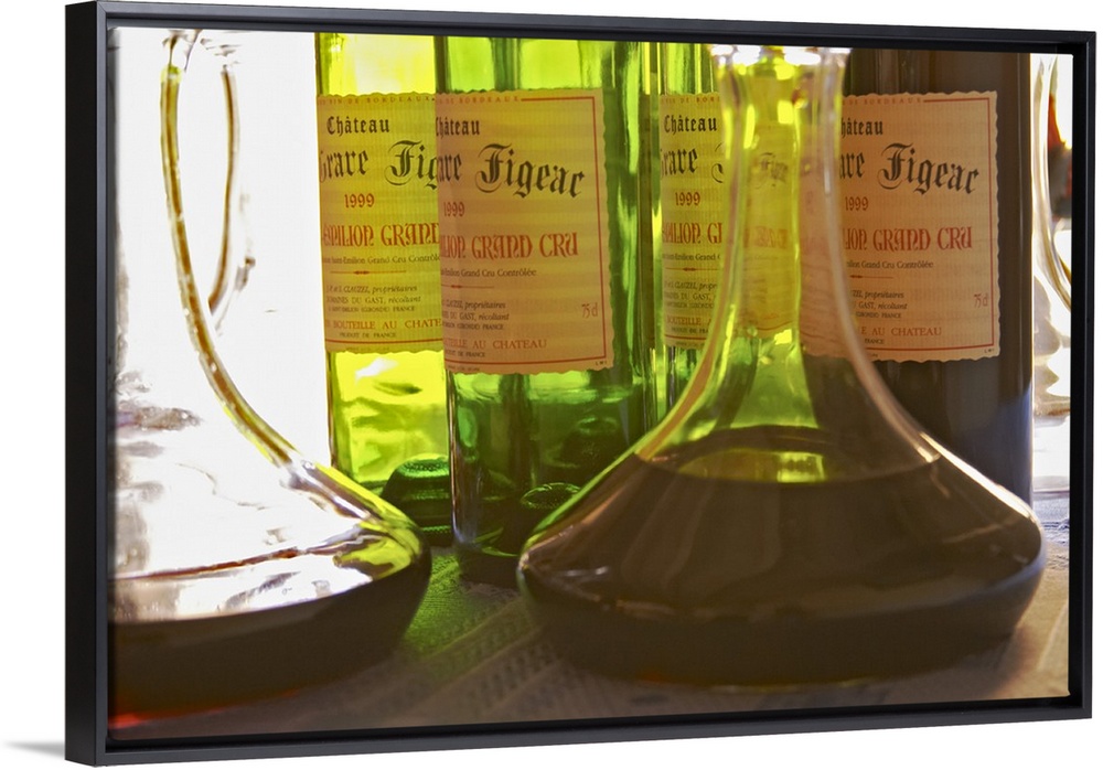 <p>Bottles and carafes decanters with Chateau La Grave Figeac - Chateau La Grave Figeac, Saint Emilion, Bordeaux</p>