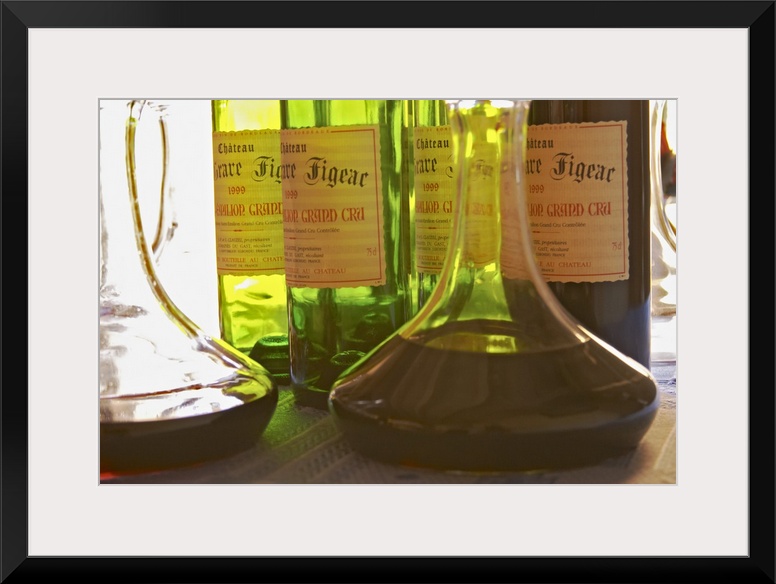 <p>Bottles and carafes decanters with Chateau La Grave Figeac - Chateau La Grave Figeac, Saint Emilion, Bordeaux</p>