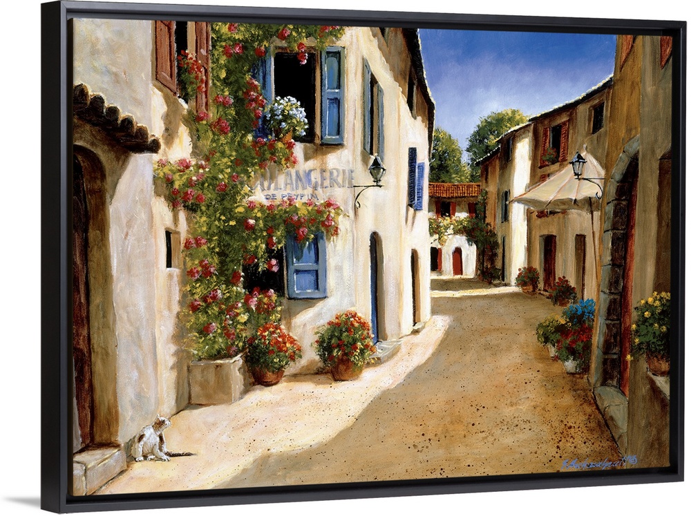 <p>Painting of a quiet alleyway in a European village.</p>