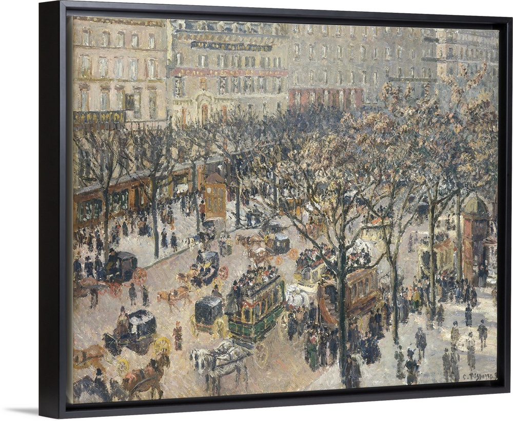 <p>Boulevard des Italiens, Morning, by Camille Pissarro, 1897, French impressionist painting, oil on canvas. In his last decade of life, Pissarro suffered from a recurring eye infection that prevented him from working outdoors except in warm weather. He bega</p>