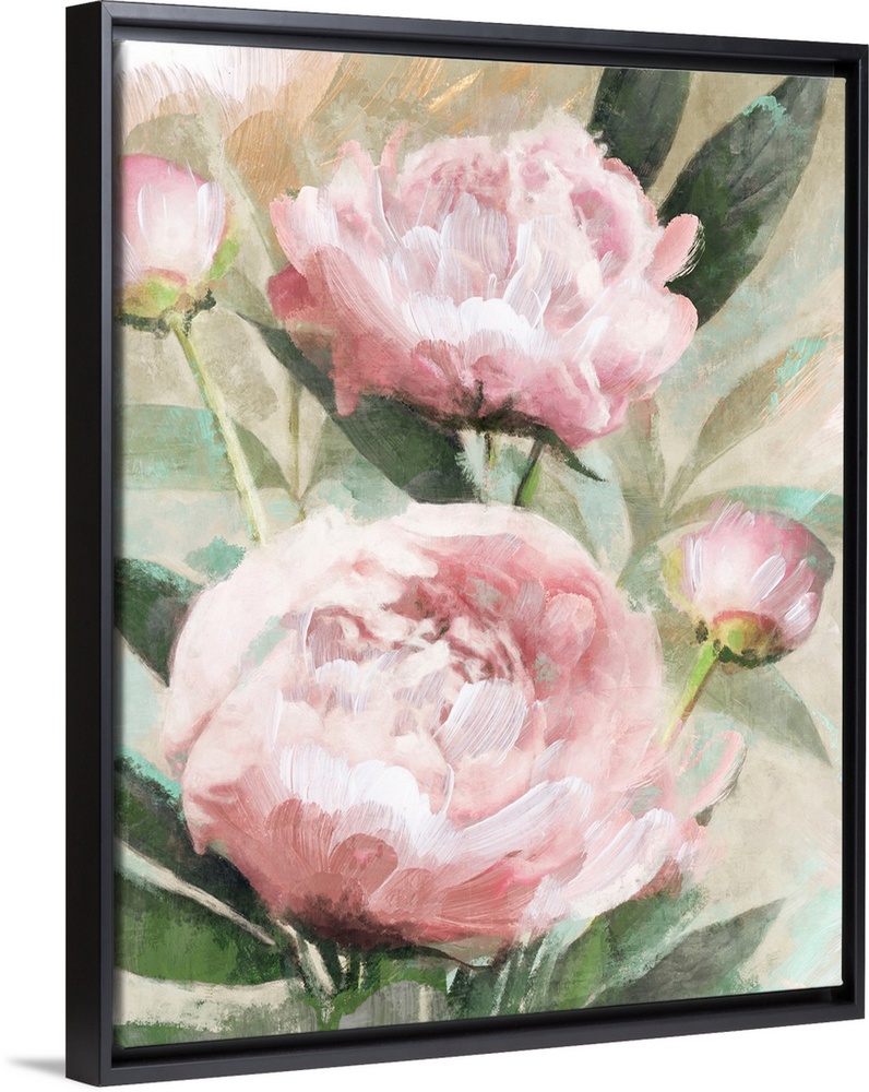 Art Transitional Nina Blue Plants and Flowers Decorative Art Florals Peony Painting Pink Wall Art