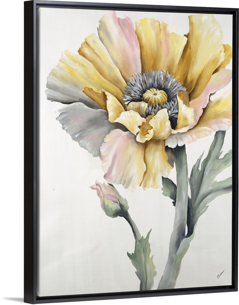 <p>Contemporary painting of a muted yellow and pink flower.</p>