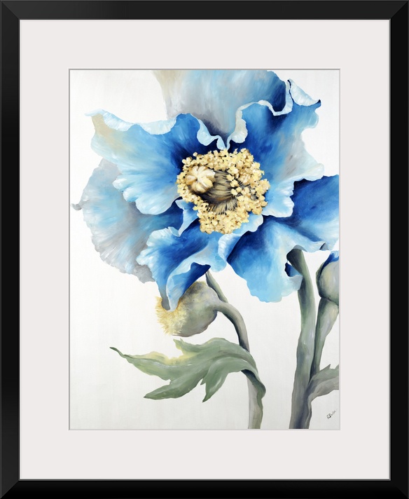 <p>Contemporary painting of a muted flower with some bright blue petals.</p>