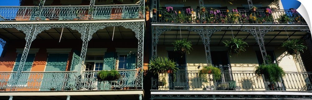 <p>A high-angle panoramic view of Bourbon Street architecture in New Orleans historic French Quarter.</p>