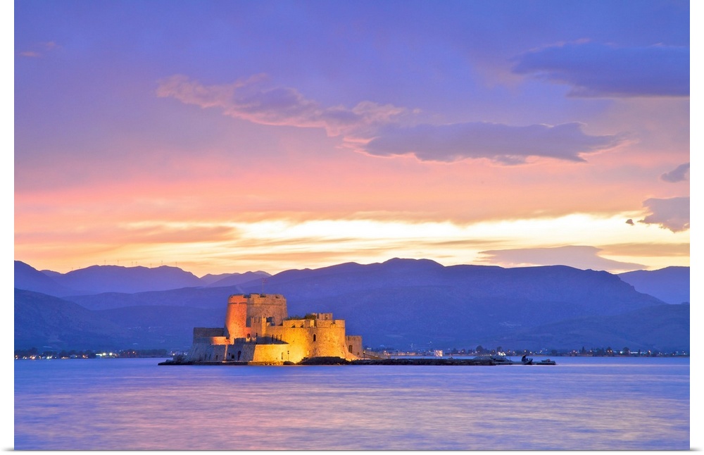 <p>Bourtzi Castle at Dusk, Nafplio, Argolis, The Peloponnese, Greece, Southern Europe.</p>