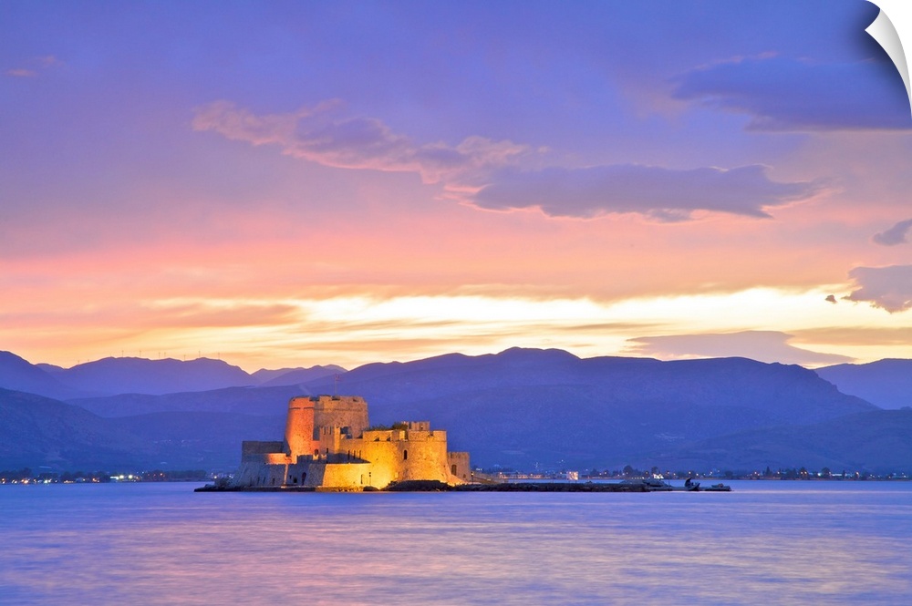 <p>Bourtzi Castle at Dusk, Nafplio, Argolis, The Peloponnese, Greece, Southern Europe.</p>