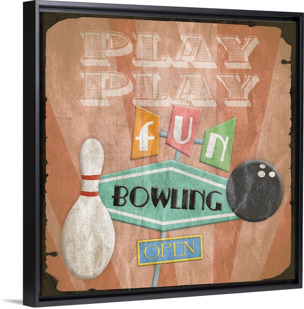 <p>Retro bowling alley sign artwork, with a rustic faded border around the image.</p>