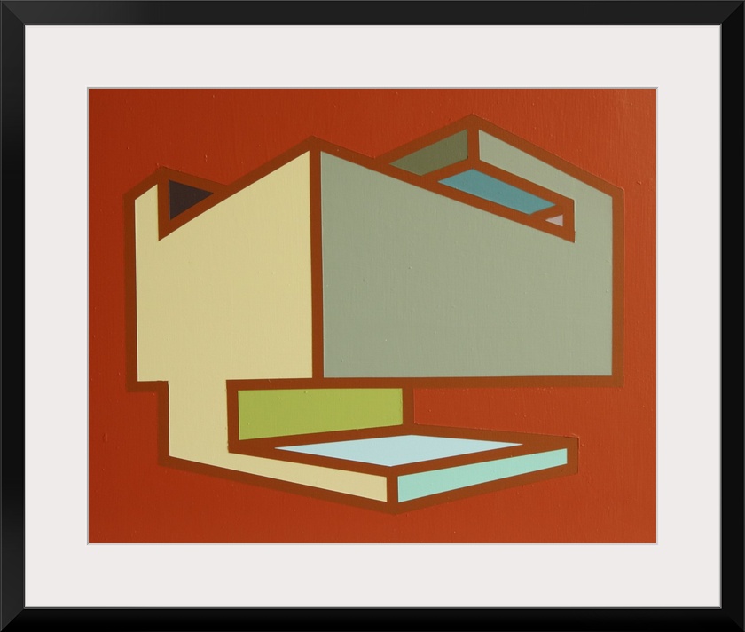 <p>Contemporary colorful abstract painting of a three dimensional geometric shape.</p>