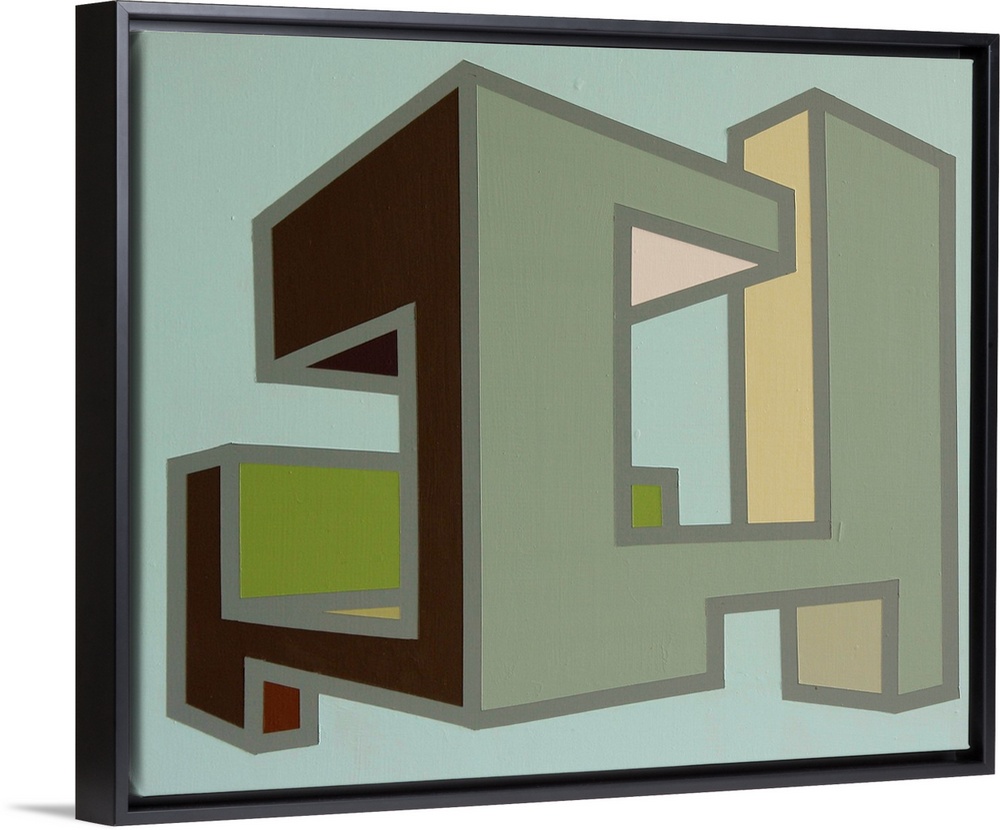 <p>Contemporary colorful abstract painting of a three dimensional geometric shape.</p>