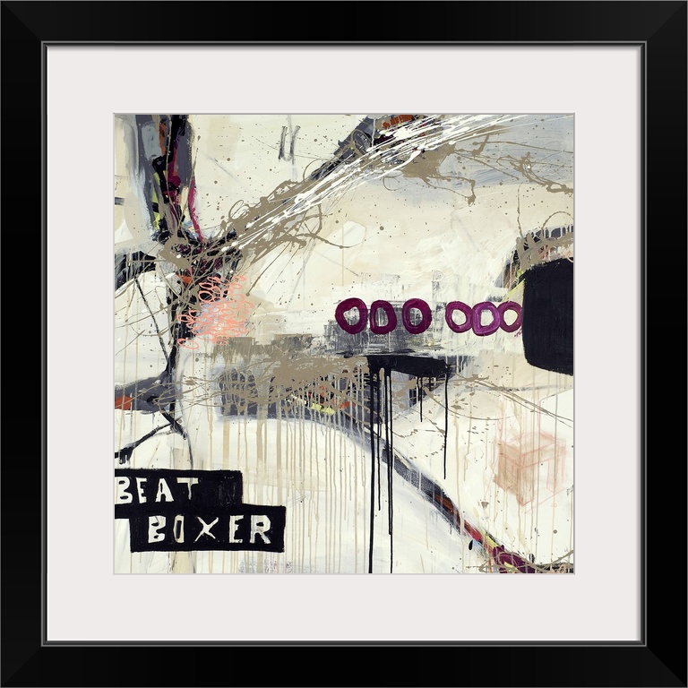 <p>Square contemporary collage with text and dripped paint with circles.</p>