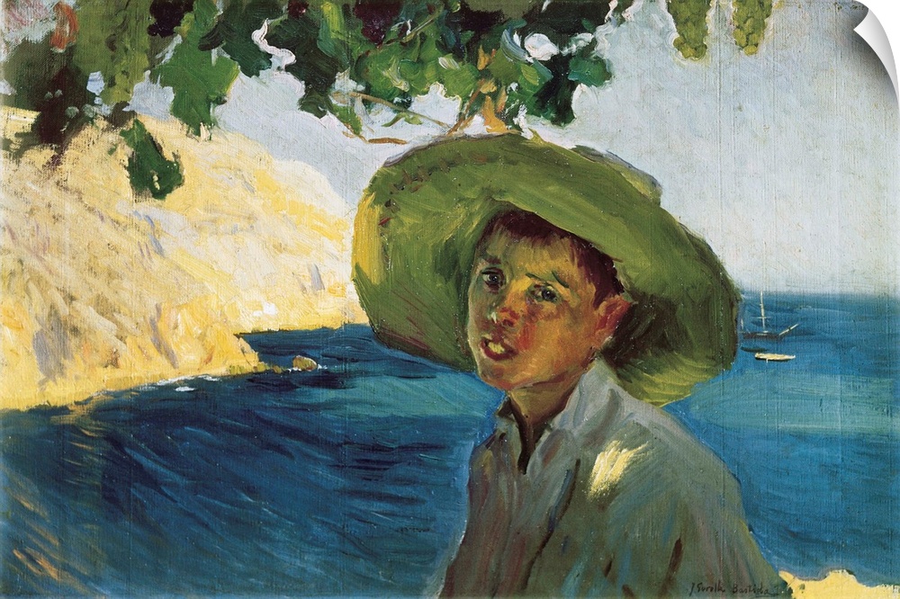 <p>SOROLLA, Joaquin (1863-1923). Boy with Hat. Post-Impressionism. Oil on canvas. -</p>