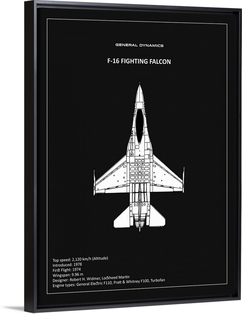 <p>Black and white diagram of a BP F-16 Fighting Falcon with written information at the bottom, on a black background.</p>