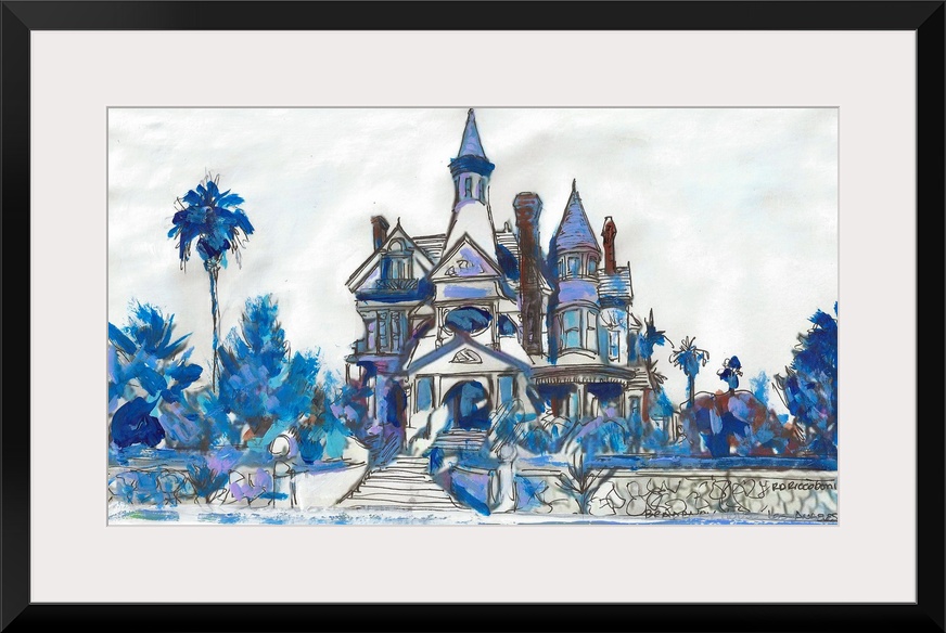 <p>Ink and acrylic painting of the Bradbury Mansion in Los Angeles, one of the Lost Victorian mansions of downtown. A parking lot and government building now sits on it's former location on Bunker Hill.</p>