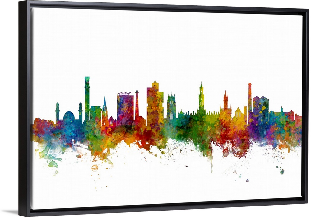 <p>Watercolor art print of the skyline of Bradford, England, United Kingdom.</p>