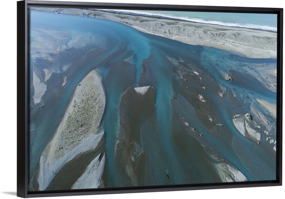 <p>Braids of Rakaia River, near Rakaia River Mouth, Mid Canterbury, South Island, New Zealand</p>