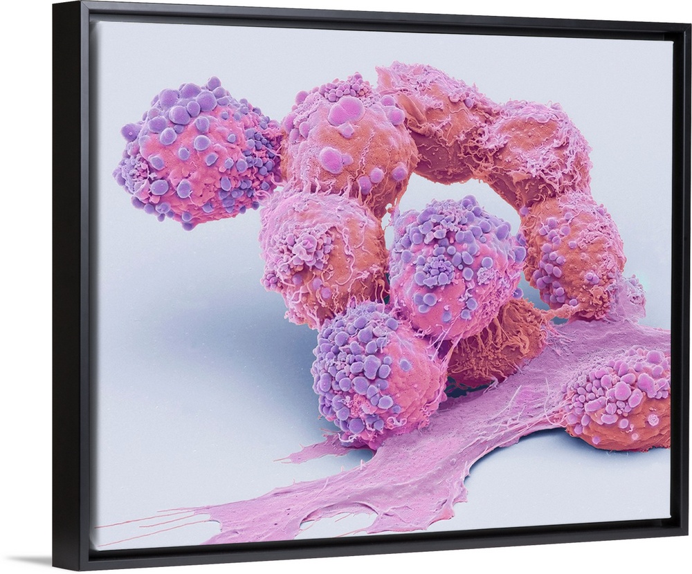 <p>Brain cancer cells. Coloured scanning electron micrograph (SEM) of cancerous cells from an oligodendroglioma. Oligodendrogliomas are a type of tumour that arise from oligodendrocytes, one of the types of cells that make up the supportive, or glial, tissue of the brain. They can be low-grade (grade II) or high-grade (grade III, or anaplastic). About 4 of primary brain tumors are oligodendrogliomas. Because of their generally slow growth, oligodendrogliomas are often present for years before they are diagnosed. The most common symptoms are seizures, headaches, and personality changes. If the tumor is accessible, standard treatment for oligodendroglioma is surgical removal of as much of the tumor tissue as possible. Magnification: x 2000 when printed at 10cm wide.</p>