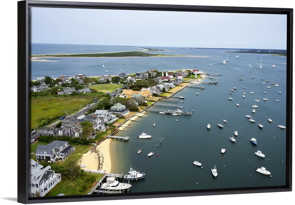 <p>Kite aerial of Brant Point and harbor and Coatue, Nantucket, MA.</p>