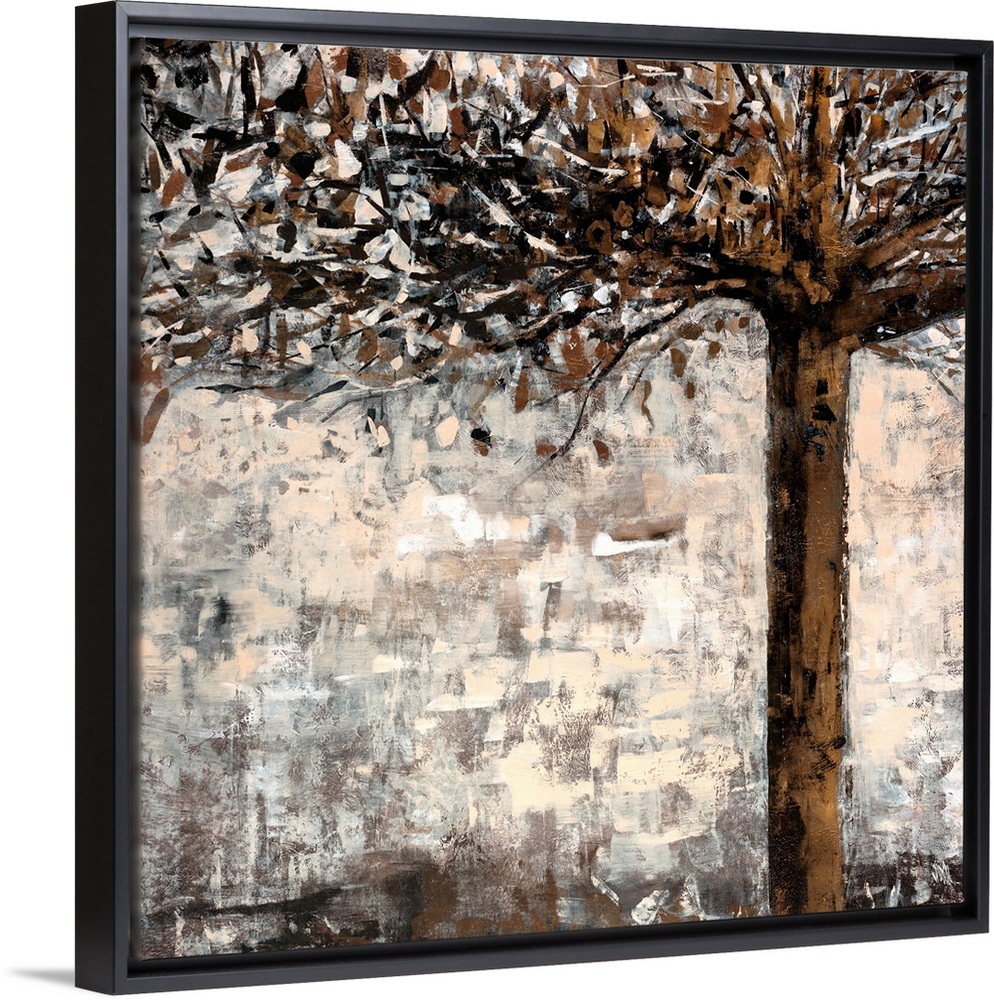 <p>A stylized and abstract painted tree illuminated by a strong light source is the center of the composition of this square decorative accent.</p>