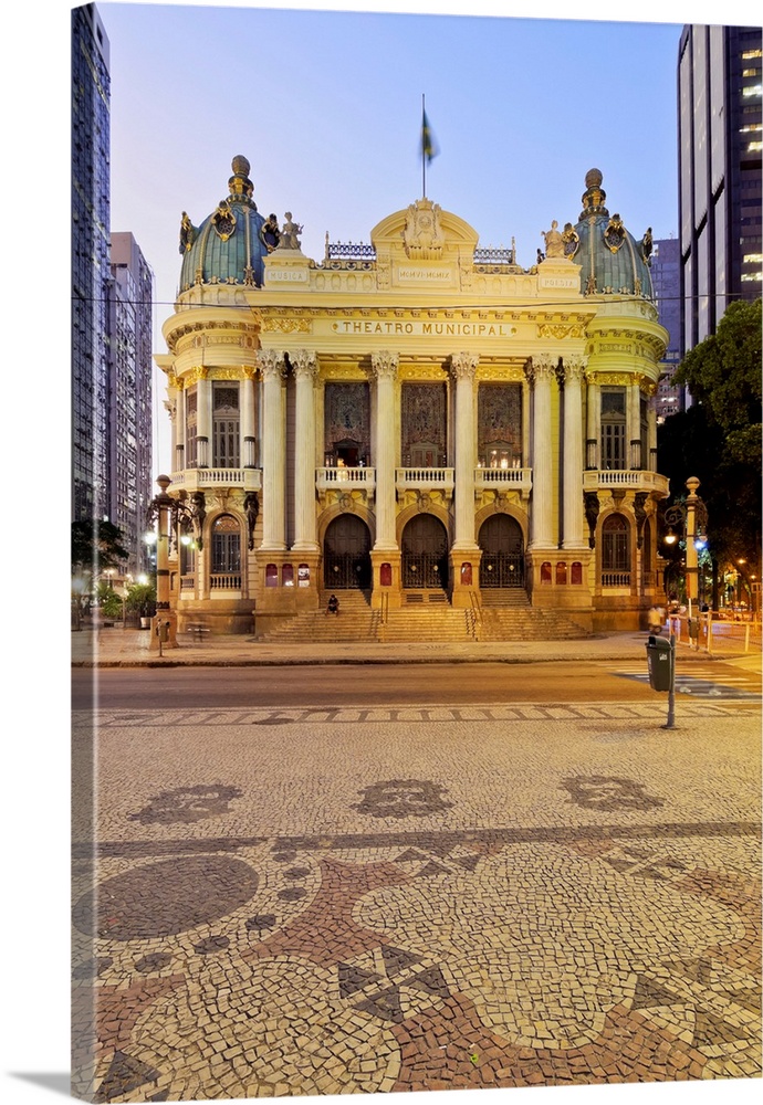 <p>Brazil, City of Rio de Janeiro, Twilight view of the Theatro Municipal.</p>