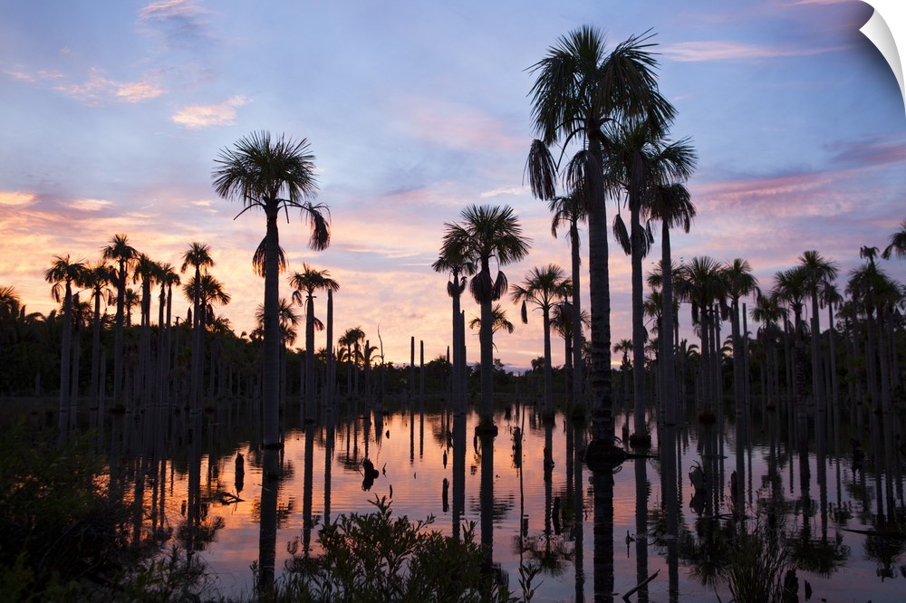 <p>South America, Brazil, Mato Grosso, Nobres, Buriti palms at the Lagoa das Araras, Macaw Lake.</p>