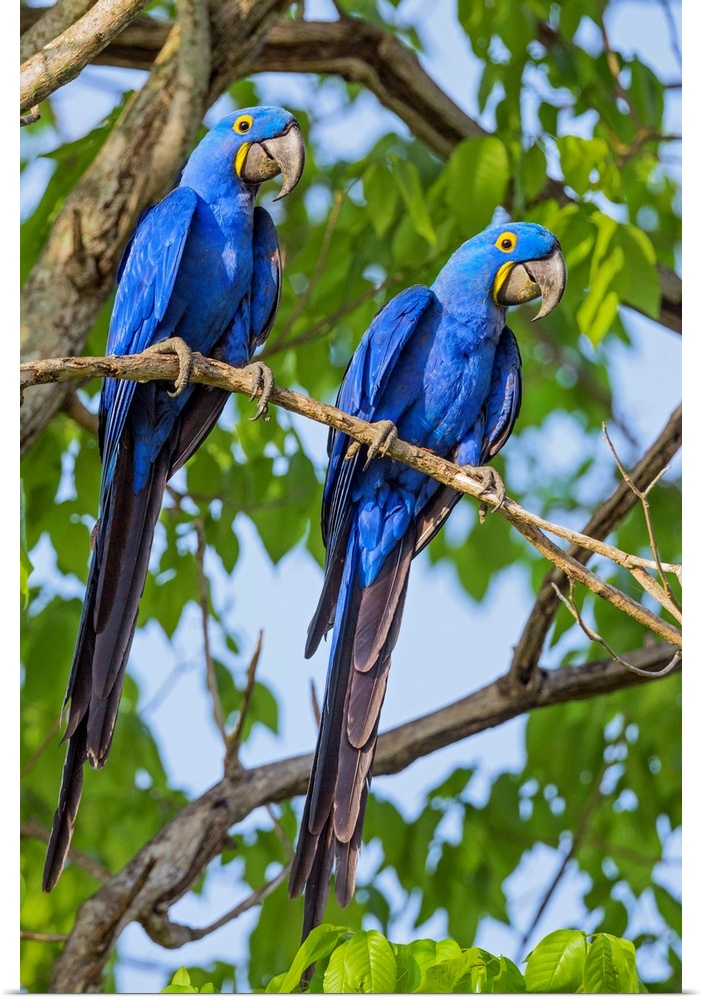 <p>Brazil, Pantanal, Mato Grosso do Sul. A pair of Hyacinth Macaws.</p>