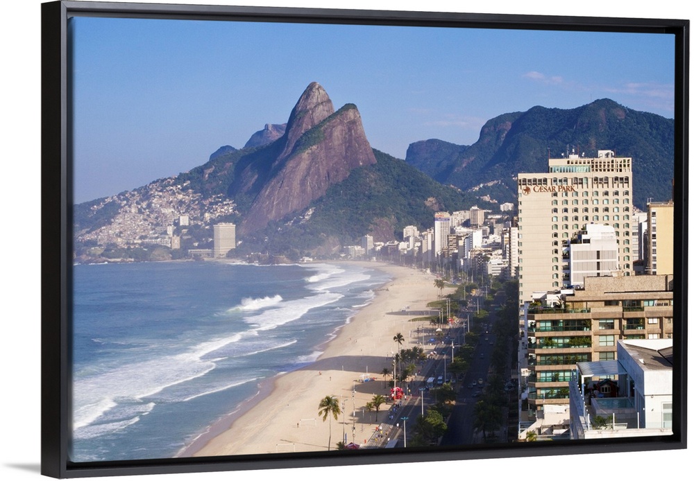 <p>Brazil, Rio De Janeiro, View of Ipenema beach looking towards Leblon and Two Brothers mountain - Dois Irmaos</p>