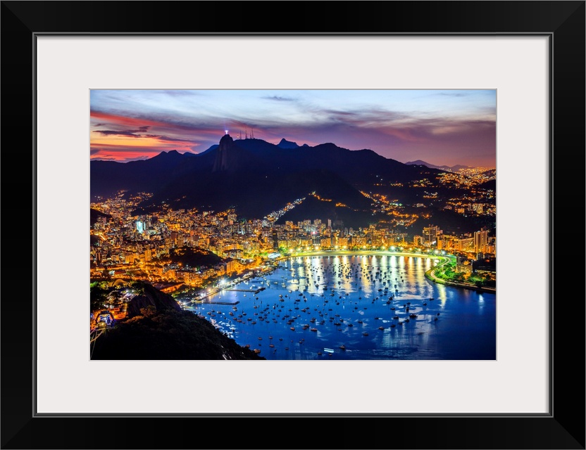 <p>Brazil, Rio de Janeiro, Sugarloaf Mountain, view towards Guanabara Bay, Botafogo, Flamengo Beach and Corcovado.</p>