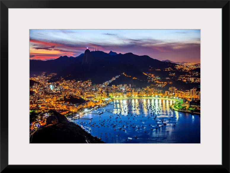 <p>Brazil, Rio de Janeiro, Sugarloaf Mountain, view towards Guanabara Bay, Botafogo, Flamengo Beach and Corcovado.</p>