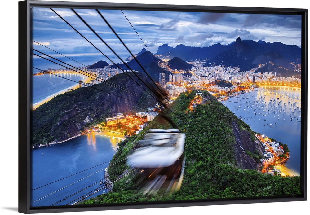 <p>Brazil, Rio de Janeiro, Sugarloaf Mountain, Teleferico, view towards Guanabara Bay, Praia Vermelha, Copacabana Beach, Botafogo, Flamengo Beach and Corcovado.</p>