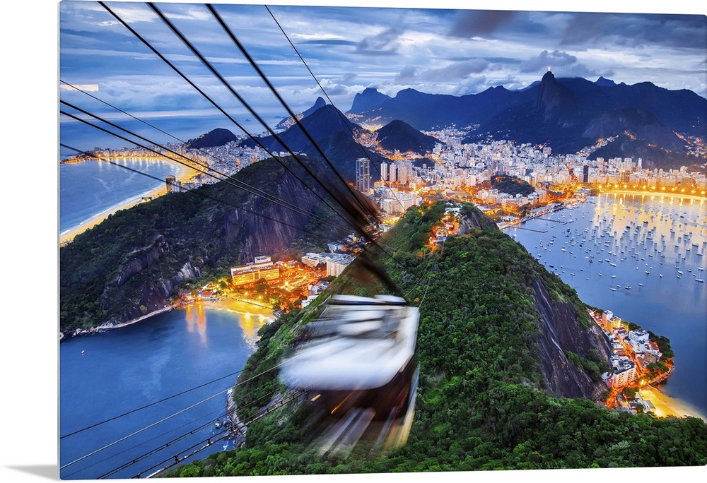 <p>Brazil, Rio de Janeiro, Sugarloaf Mountain, Teleferico, view towards Guanabara Bay, Praia Vermelha, Copacabana Beach, Botafogo, Flamengo Beach and Corcovado.</p>