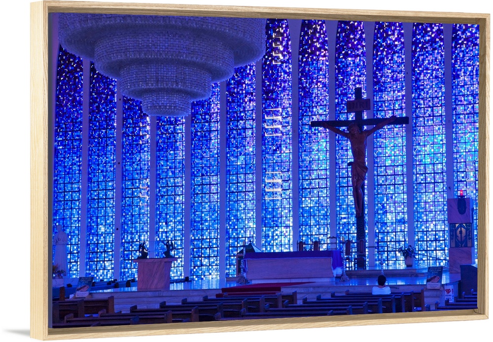 <p>South America, Brazil, Brasilia, Distrito Federal, the Santuario Dom Bosco church showcasing the stained glass by architect Cl..udio Naves and Hubert Van Doorne, the crucifix by Gotfredo Traller and a 3 tonne chandelier by Alvimar Moreira</p>