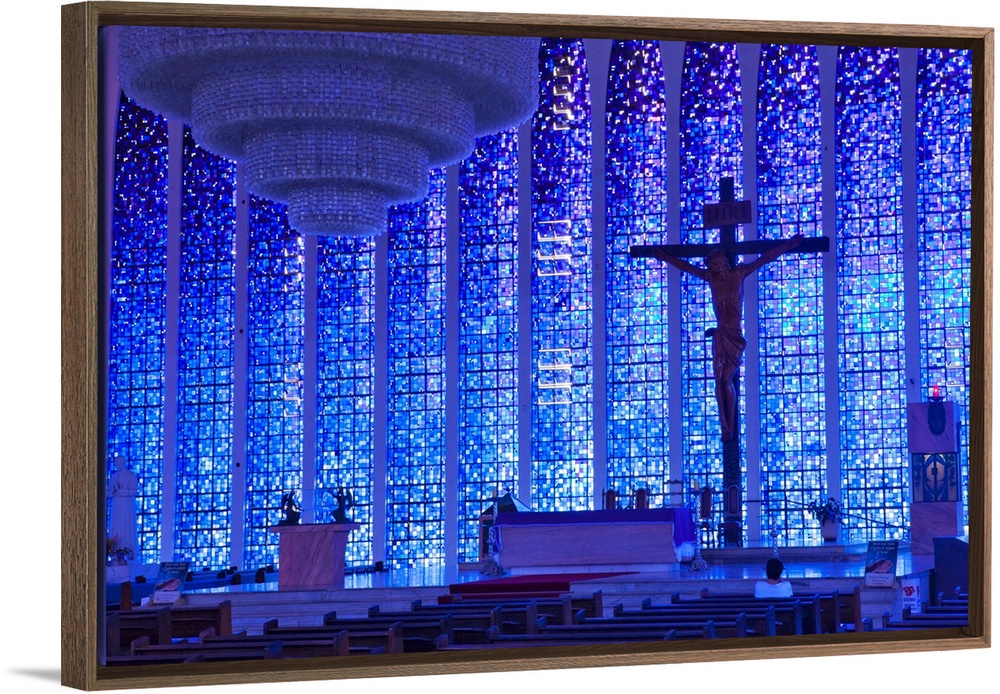 <p>South America, Brazil, Brasilia, Distrito Federal, the Santuario Dom Bosco church showcasing the stained glass by architect Cl..udio Naves and Hubert Van Doorne, the crucifix by Gotfredo Traller and a 3 tonne chandelier by Alvimar Moreira</p>