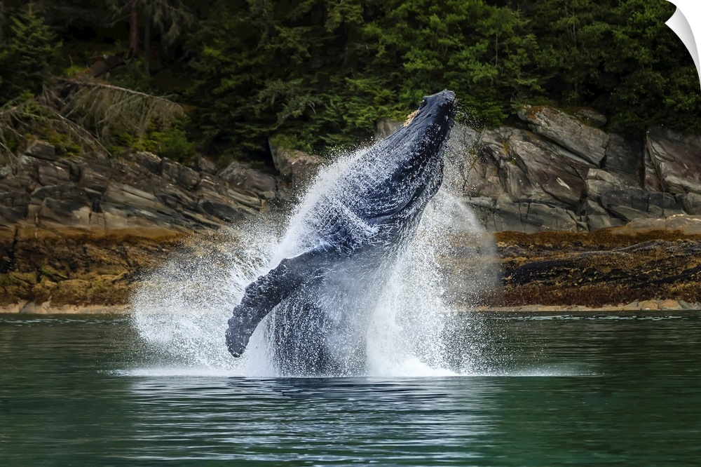 <p>Breaching Humpback Whale (Megaptera novaeangliae) in Chatham Strait, Tongass National Forest, Southeast Alaska, United States of America</p>
