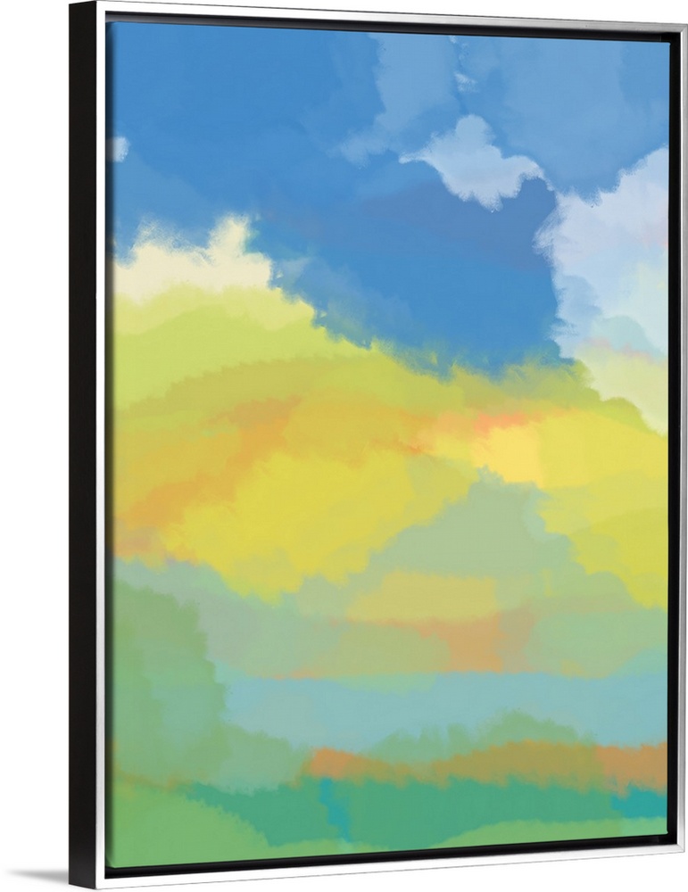 <p>Abstract artwork resembling a deep blue sky over a yellow and green landscape.</p>